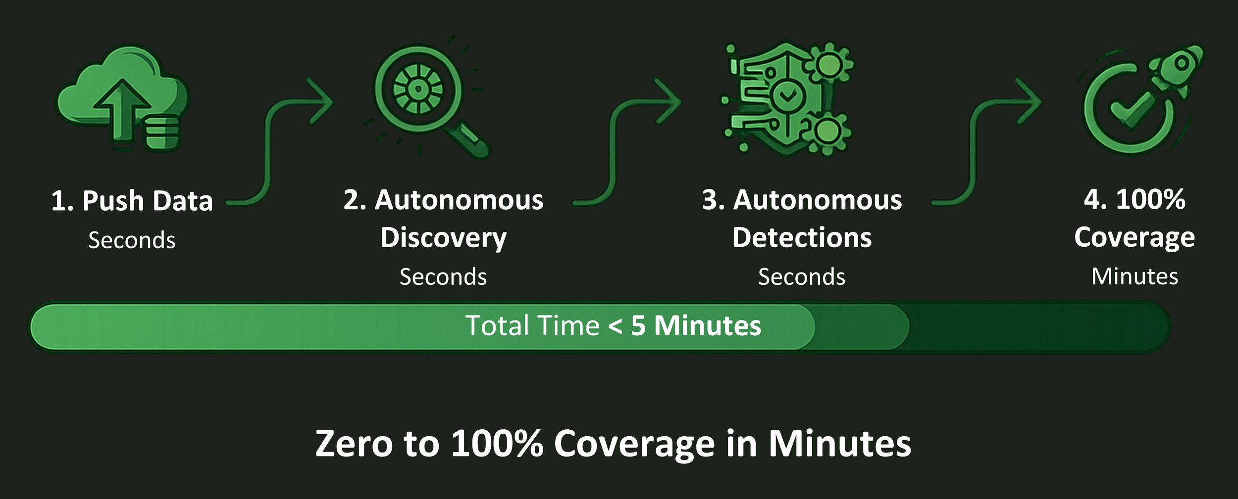 No schemas. No normalization. No months of "integration." Push data, detection starts. Time-to-value in minutes.