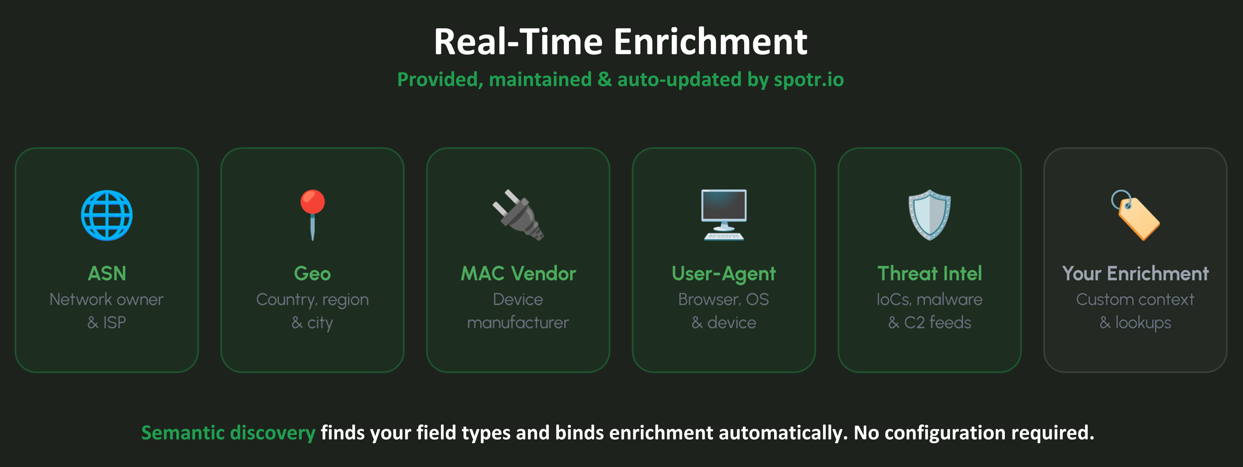 spotr.io handles all your post-ingest enrichment—automatically where you need it pre detection.