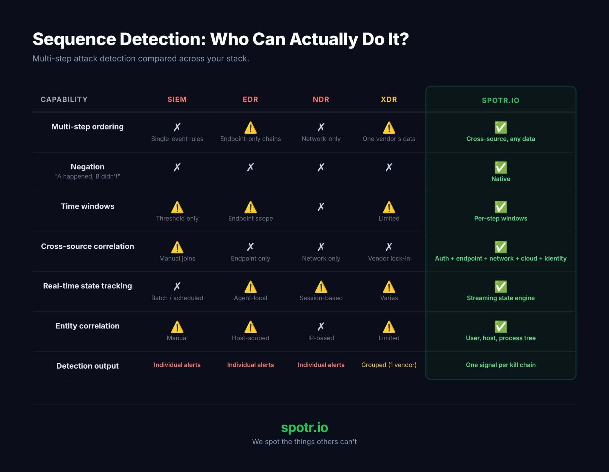 "What if the kill chain was one detection, across all sources, in real time?" — That's spotr.io.
