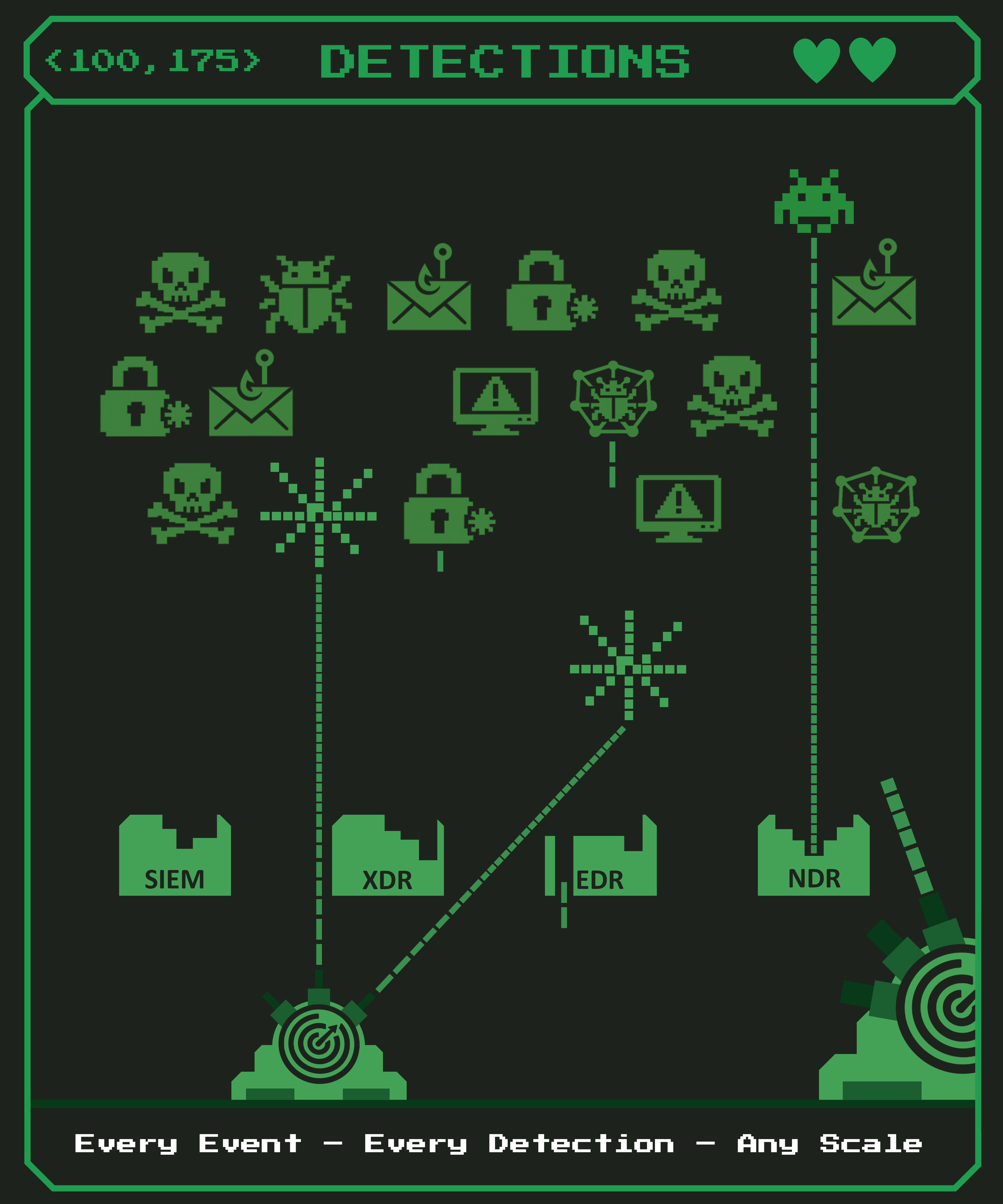 Many Threats One Solution View fullsize Data Sources & EnvironmentsMulti-Cloud DetectionHigh Velocity DataCDN LogsIoT / OTAPI SecurityPipeline FriendlyDetection CapabilitiesSequence (SIEM Comparison)Sequence (Multi-tool Comparison)Anomaly Detection: Beyond Pattern MatchingHigh-Cardinality AggregationUEBAEnrichment: Context Before Detection, Not AfterDetection EfficiencyDetection Engineer Threat DetectionRansomware Early WarningLateral MovementInsider ThreatWindows Application ControlDNSIdentity & AccessIdentityZero Trust Continuous VerificationBusiness & OperationsMSP to MSSP - OvernightMSSP Margin MultiplierM&A: Detection on Day OneComplianceMTTD-MTTR CompressionAI SOC Token WasteField and Entity DiscoveryActions and Outputs